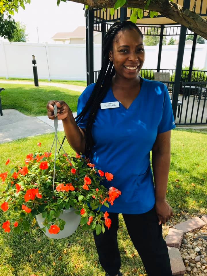- Flower Gardening: Hanging baskets with annuals, we dead-head and water.